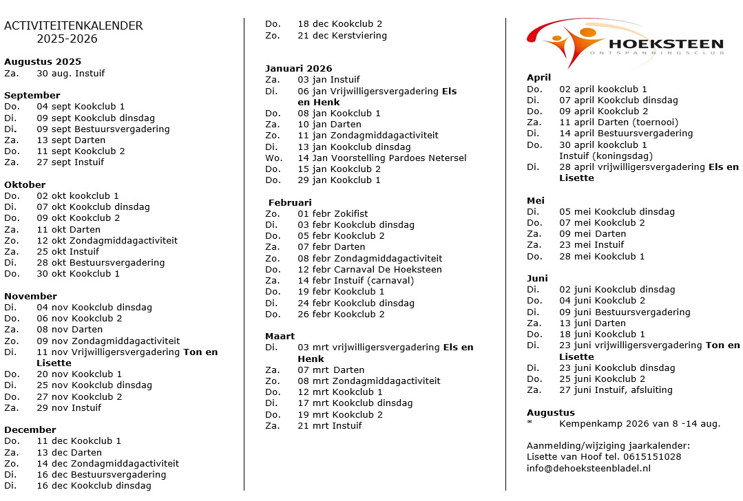 Agenda - De Hoeksteen